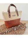 This handmade handbag is crafted from faux leather and reinforced with high-density foam for better structure. It features a 25 cm zipper closure and an interior patch pocket measuring 13 × 10 cm. The bottom is protected with bag feet. Approximate dimensions: 25 cm wide, 21 cm high, 9 cm deep. It is carried by two leather handles. A shoulder strap can be added upon request for an additional fee.