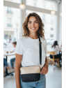 The shoulder bag closes completely with a 23cm zipper. It has an inside zipped pocket of approximately 18cm/15cm deep.