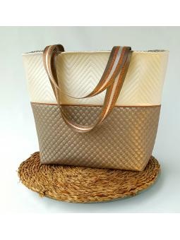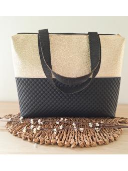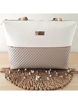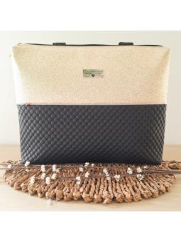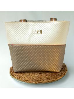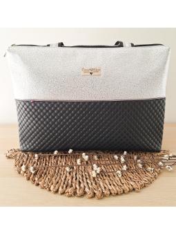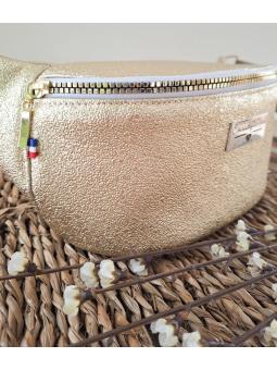 Sac banane doublé de mousse pour une bonne tenue. Sangle blanc et bronze lurex pailletée de 38mm . Poche plaquée à l'intérieur. Dimensions : GRANDE : 29 X 13 X 9 cm (Intérieur : 22 x 12 x 8 cm ) PETITE : 26 x 11 x 7.5 cm (Intérieur : 20 x 10 x 6.5 cm ) Retrait gratuit à...
