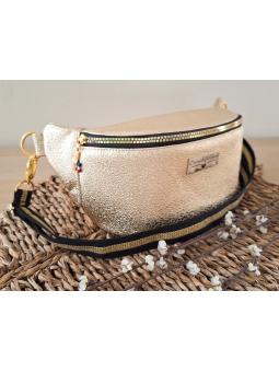 Sac banane doublé de mousse pour une bonne tenue. Sangle blanc et bronze lurex pailletée de 38mm . Poche plaquée à l'intérieur. Dimensions : GRANDE : 29 X 13 X 9 cm (Intérieur : 22 x 12 x 8 cm ) PETITE : 26 x 11 x 7.5 cm (Intérieur : 20 x 10 x 6.5 cm ) Retrait gratuit à...
