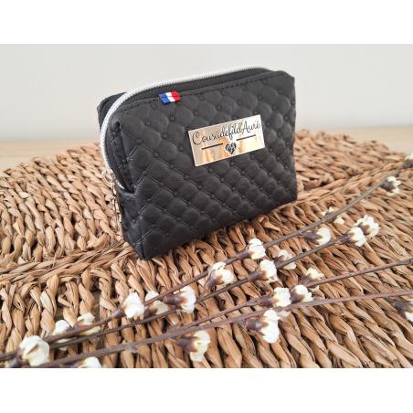 Porte-monnaie carré noir gaufré / argenté
