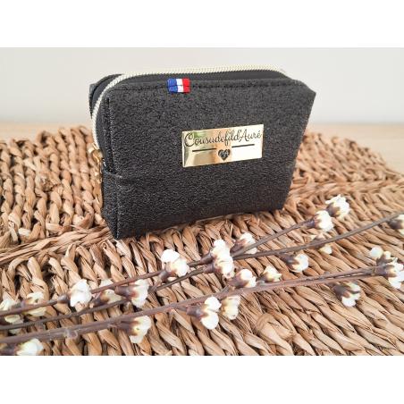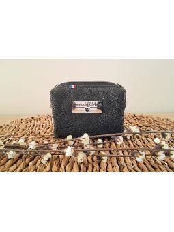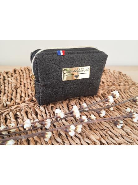 Porte-monnaie carré Noir granité / argent