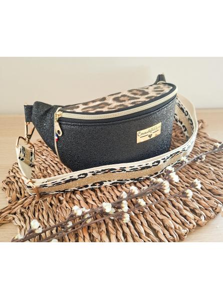 Sac banane artisanale noir et léopard